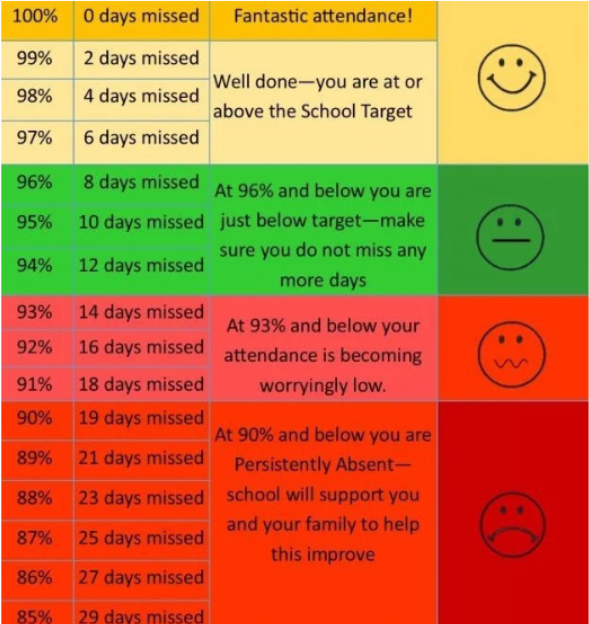 90% attendance or below is classed as PERSISTENT ABSENTEEISM and is a major cause for concern.